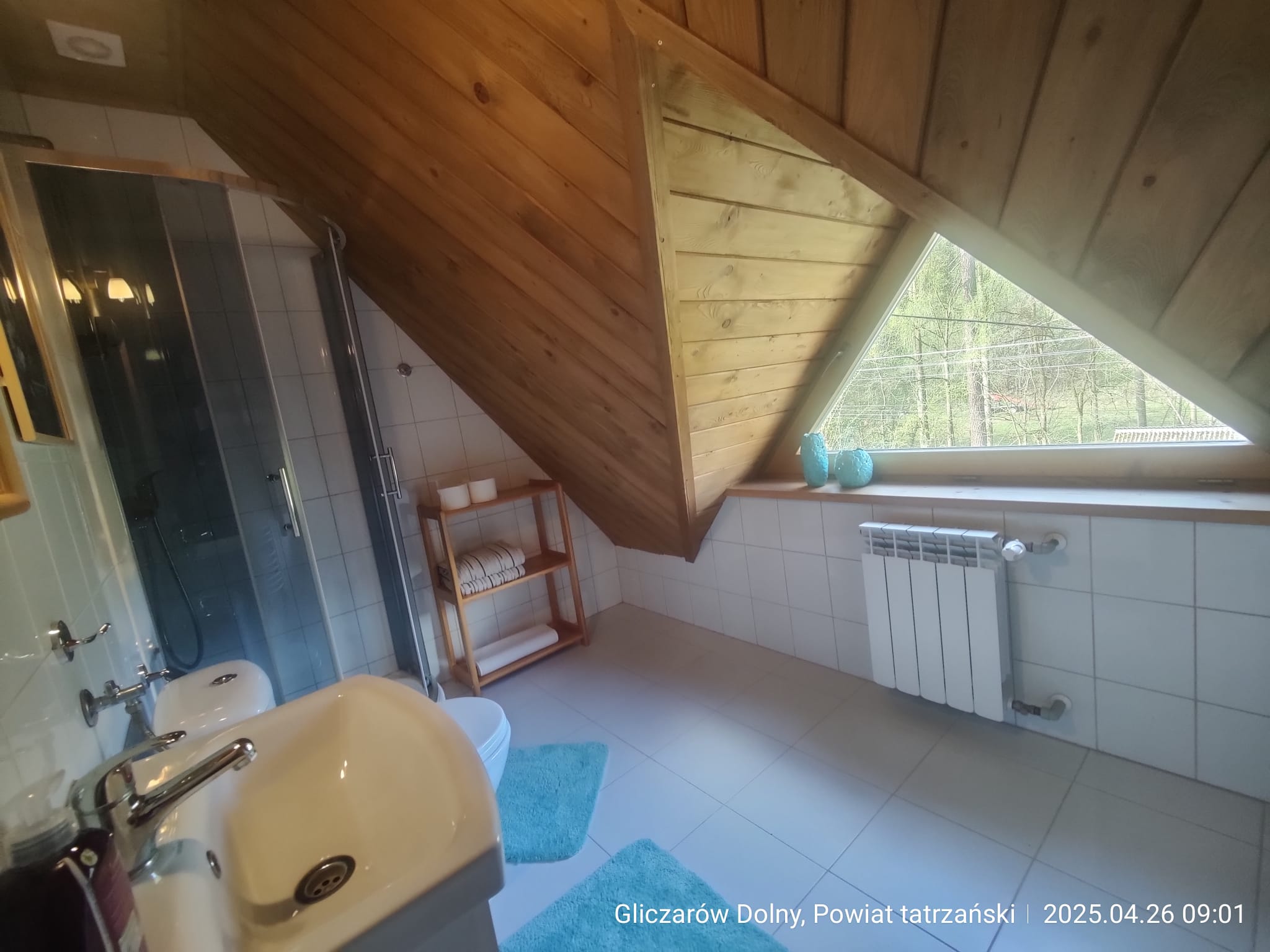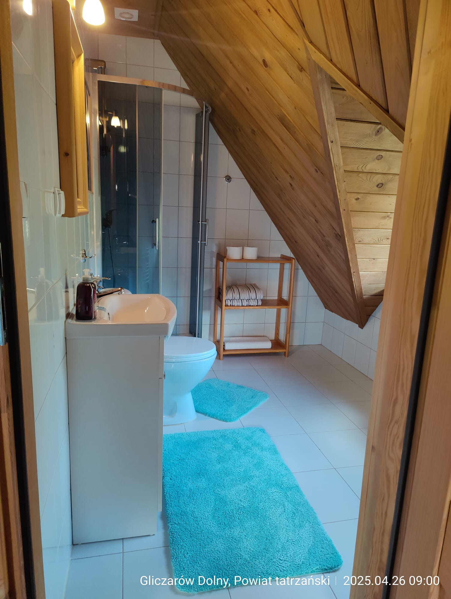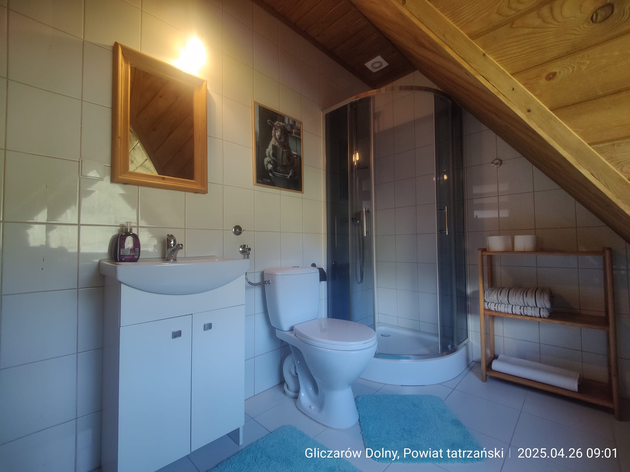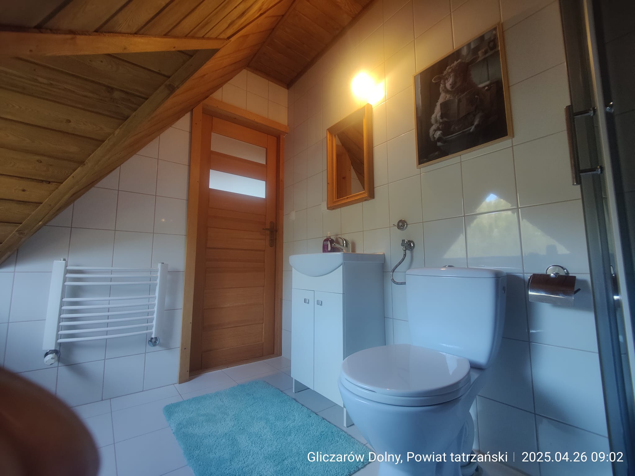Dodatkowo na dole znajduje sie jeden pokój 2-3 osobowy z łazienką dla np. osób starszych czy niepełnosprawnych.