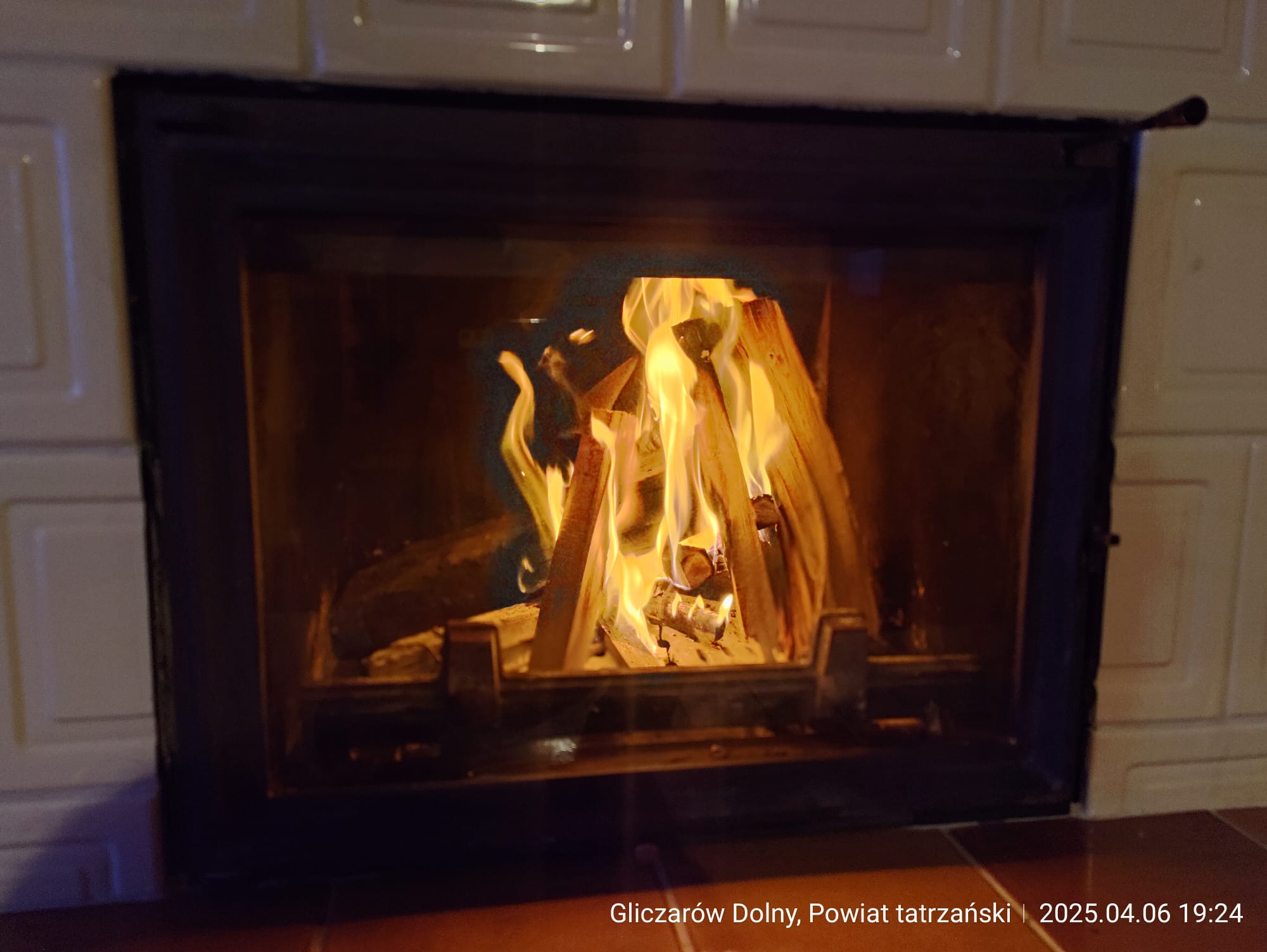 Wieczory umili Gościom działający, kaflowy kominek, do którego zapewniamy drewno.